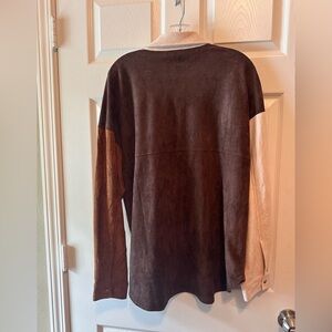 Soft suede feel, layer it, wear tucked or half tucked. Like new - never worn