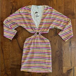 Acoa Cut Out Dress Women S 70s Retro Colorful Mini Boho Bodycon Lined NWT $114