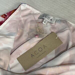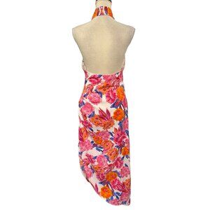 Acoa Dress Womens M Satin Floral Halter‎ Open Back Maxi Asymmetrical Vacation