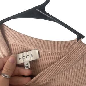 Acoa Size Medium Beige Ribbed Sweater Dress. This chic fall bodycon dress features a cozy ribbed texture with flattering ruched sides for a sleek, form-fitting silhouette. The above-knee length and soft beige color make it perfect for seasonal transitions, offering both style and comfort. Ideal for casual outings or dressed up for a night out, this versatile sweater dress is a must-have for your fall wardrobe.