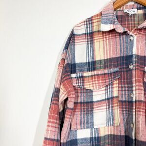 Acoa Wool Blend Oversized Button Up Shacket Shirt Jacket Rust Plaid Size M Basic