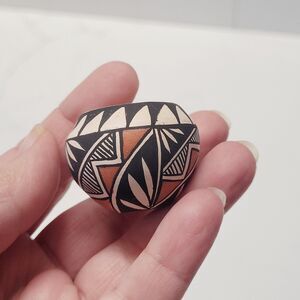 Vintage Native American Acoma NM Pottery Vase Pot Signed L Garcia Polychrome Approx 1-1/2" Handmade.Good pre-owned condition with mark on bottom. Estate find uncleaned. See pics for approx measurements and details.