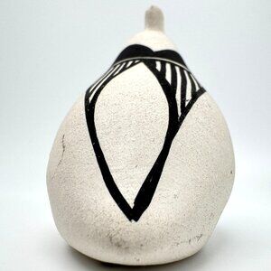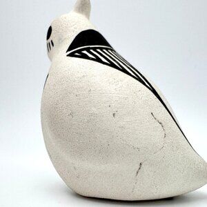 Acoma Pueblo Handcrafted Chino Ceramic Quail Bird Figurine Black & White Pottery
