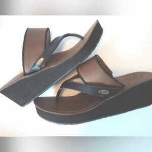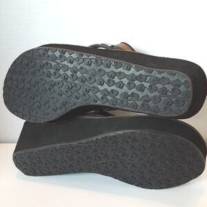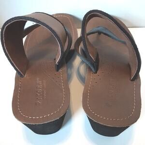 Acorn Brown & Black Slip On Thong Wedge Sandals Women's 7