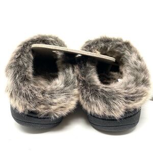 The faux chinchilla lining is so luxuriously soft, you'll have a hard time taking these off. Plus, the Cloud Contour technology works with the shape of your foot for instant comfort. A skid-resistant indoor/outdoor sole makes it easy to go anywhere, anytime.
