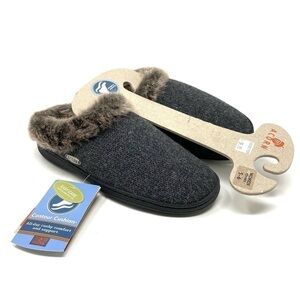 Acorn Faux Fur Chinchilla Ragg Slippers Dark Charcoal