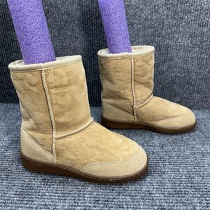 Acorn Sherling Sheepskin Fur Lined Boots Womens 7 Brown Tan Mid Calf Pull On. Excellent pre-owned condition with no flaws found. Fast shipping!