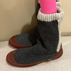 Acorn Slouch Boot Slipper in Charcoal Ragg Wool and Suede, size 9-10