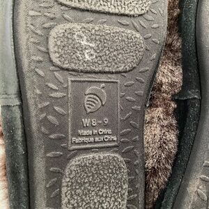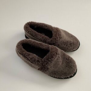 moccasin-style slippers. They have a soft, fuzzy exterior