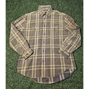 Acorn by Bob Goldfeder Mens L Button Up Flannel Shirt Plaid Grunge Colorful