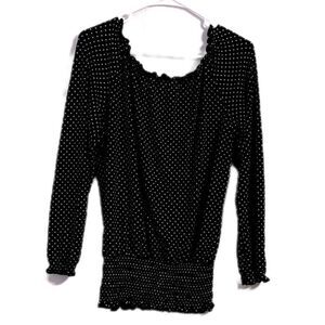 Acorn women’s size small long sleeve, textured, smsmocked blouse with ruffle