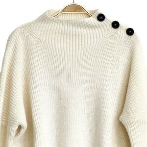 Acote Ecru Ivory Button Shoulder Alpaca Crewneck Pullover Sweater NWT $198