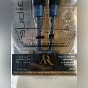 Acoustic Research AP052 15ft Subwoofer Cable. New in original sealed package. Packaging slightly damaged as shown in photos.