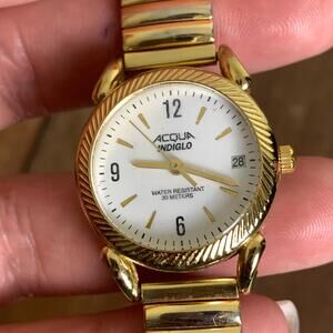 Acqua Timex Women's Indiglo Gold Tone Quartz analog Watch Date Indicator