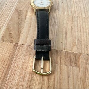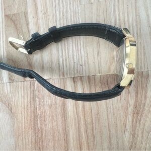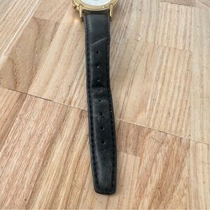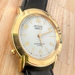 Acqua ladies gold tone black leather dress watch NEW BATTERY