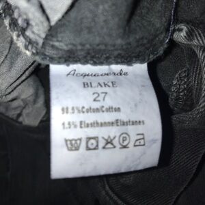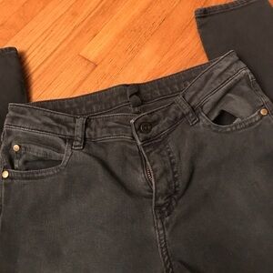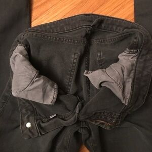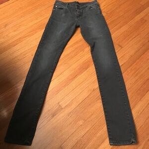 Black skinny jeans! Super soft and worn in skinny jeans. Color is faded black. Three spots in back as shown in last few pictures. 98.5% cotton and 1.5% elasthane with a little stretch. Approximate measurements: Waist measures 27 inches. Rise is 8 inches. Inseam measures 30 inches. Ankles measure 10 inches around.