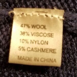 47% wool, 38% viscose, 10% nylon, 5% cashmere