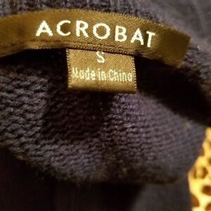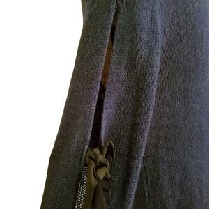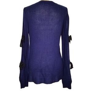 Acrobat Black Bows Tie Split Sleeve Blue Wool/Cashmere Blend Sweater Size small