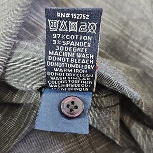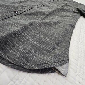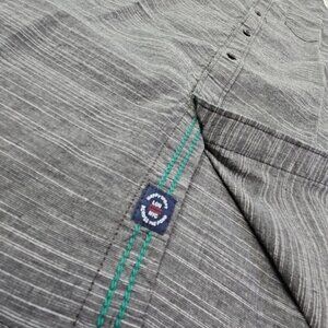This Across The Pond short sleeve shirt in men's medium size is a stylish and versatile option for various occasions. The grey button-down design with a collared neckline and spread collar style gives it a classic and polished look, perfect for casual wear or workwear.