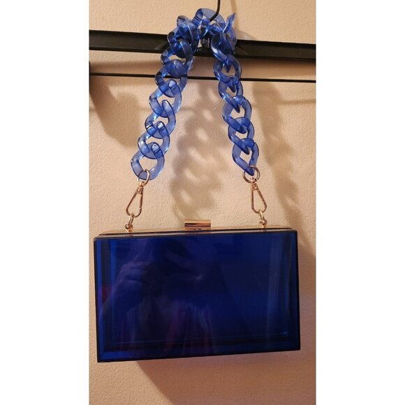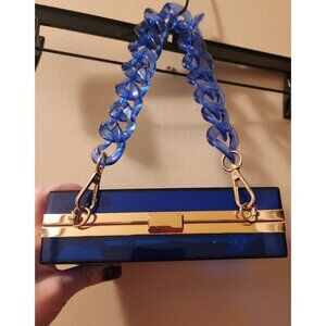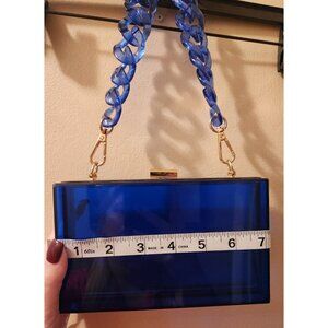 Transparent Blue Acrylic Box Purse. Good condition. Measurements are in photos.