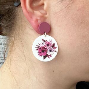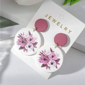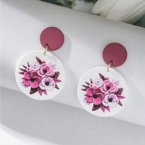 Acrylic Earrings With Bright Flower Print, Elegant & Cute, In Clay Texture