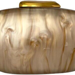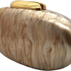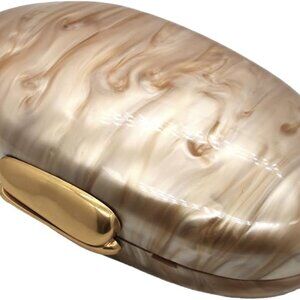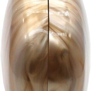 Features: Unique egg-shaped acrylic clutch with a glossy finish, vibrant gold color, and a push lock closure. The detachable chain strap makes it versatile—use as a clutch, shoulder bag, or crossbody. Spacious enough for your essentials like phone, keys, lipstick, and more, yet compact for easy elegance.