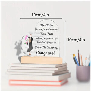 Acrylic Graduation Keepsake w/Wooden Base, Inspirational Graduation Gift for Her