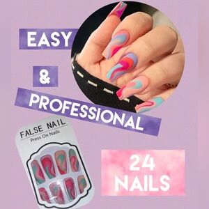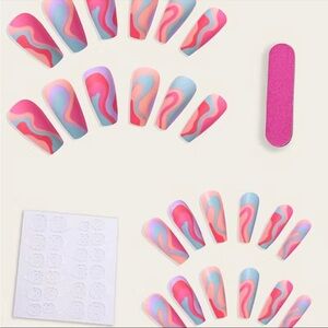 Long length, not quite ballerina, more of a tapered square-tip acrylics with a ton of personality - a bright and colorful psychedelic barbie manicure - you receive 24 nails