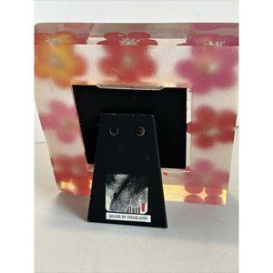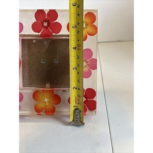Acrylic Lucite Mod 3D Encased Pink Silk Flower Vtg 5.25" Frame for 3" Photo a couple very fine scratches tried to show in pictures and one small chip in corner at the back of the frame also shown in pictures
