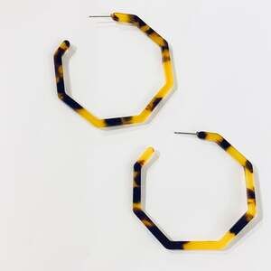 Acrylic Octagon Tortoise Shell Hoop Earrings