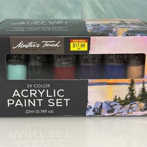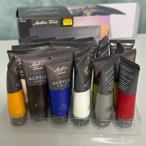Explore your creativity with the Acrylic Paint Set. Featuring a vibrant array of colors including black, red, blue, and tan, this set is perfect for artists of all levels. More colors included too!