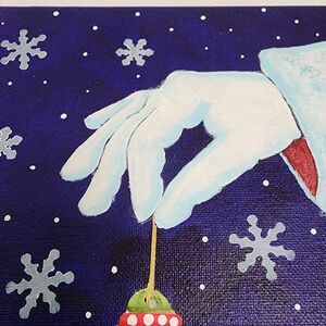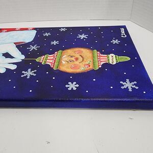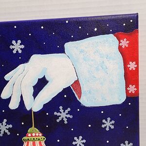Acrylic Painting On Canvas Santa Hand Holding Gingerbread Ornament Signed New