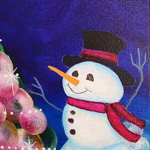 Acrylic Painting On Canvas Snowman and Christmas Tree Pastel Colors 9" W X 12" T