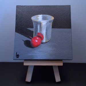 Red Cherry Reflection - Mini Acrylic Painting - A perfect gift for art aficionado without breaking your piggy bank!