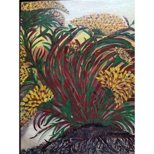 Acrylic Painting Signed Plants Flowers Nature measures 8" x 10"