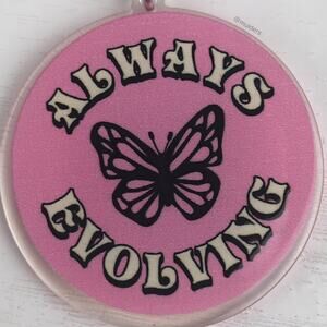 Acrylic Pink "Always Evolving" Butterfly Insect Key Chain or Bag Charm