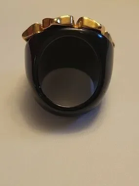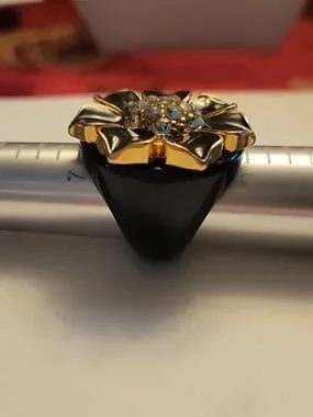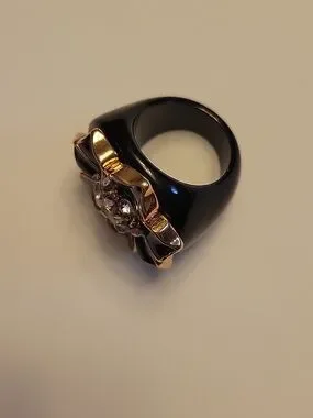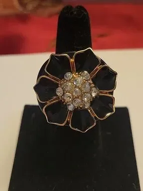 Beautiful black acrylic and rhinestone chunky flower ring.