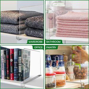 🧿[EASY TO INSTALL] Each clear shelf divider is 11.8" L x 7.87" H. The divider opening FITS UP TO 0.75" THICK (exceeding this thickness may cause cracking). The acrylic closet dividers are easy to install. Just slide the dividers onto your shelf, and they stay in place without tools or mounting hardware. Adjustable clips design can be easily moved or removed while organizing. The bottom of the closet shelf divider has an anti-slip mat that won't scratch your shelves when sliding.