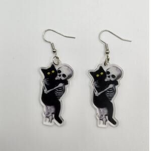 #SkeletonEarrings #BlackCatEarrings #GothicJewelry #HalloweenEarrings #StatementEarrings #AcrylicJewelry #DangleEarrings #EdgyFashion #NewWithTags #UniqueStyle