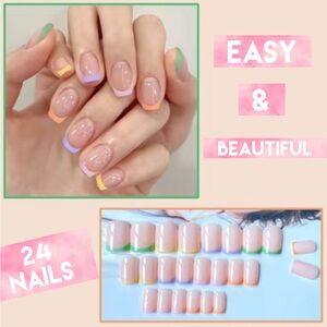 Short, soft square-tip acrylics with pastel French manicure - you receive 24 nails