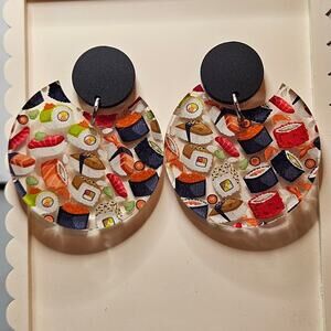 Acrylic Sushi Print Dangle Earrings