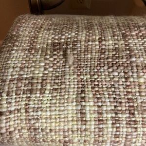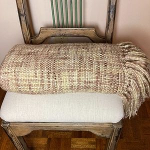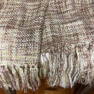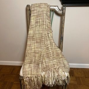 Beautiful new acrylic throw blanket with fringe. Hand-made look. Used as showroom sample, therefore no sew-in labels. Excellent condition except for one minor pull which is pictured. Perfect for when you need something to snuggle up on the couch or use as decorative accent on a couch, chair or bed.