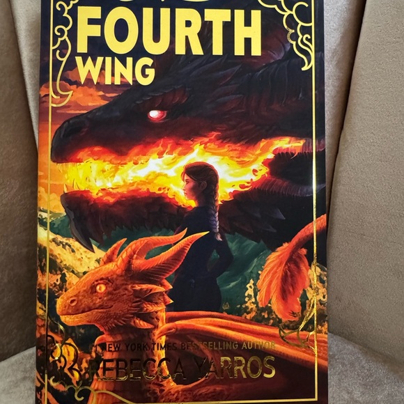 Explore the captivating narrative of 'Fourth Wing' by Rebecca Yarros. This edition features a stunning black and gold cover, making it a standout addition to your library.