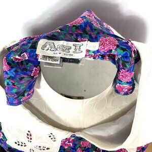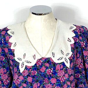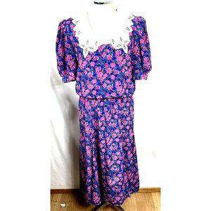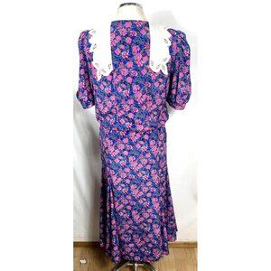 Act 1 Dress Floral Sz 9/10 Blue Pink Blouson Bodice Pleated Skirt Cottagecore Vtg 1980's