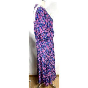 Act 1 Dress Floral Sz 9/10 Blue Pink Blouson Bodice Pleated Skirt Cottagecore Vt