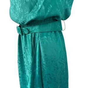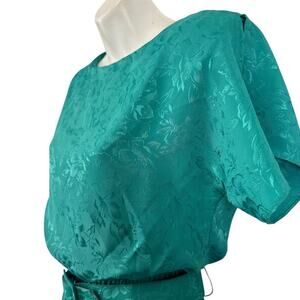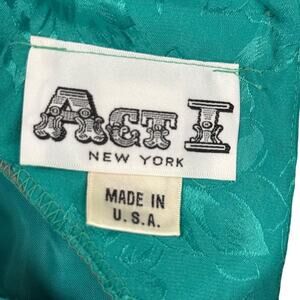 Act I Vintage Floral Satin Print Short Sleeve Blouson USA Made Green Dress sz 4