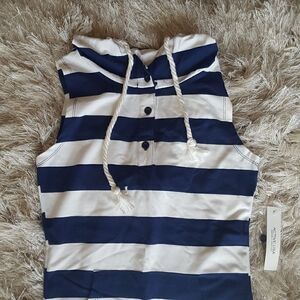Actice Basic Sleeveless Striped Hooded Midi Dress Blue White