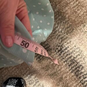 This dress is an excellent used condition. It has a beautiful color blocked design. The bottom is green with polkadots.