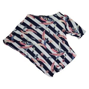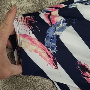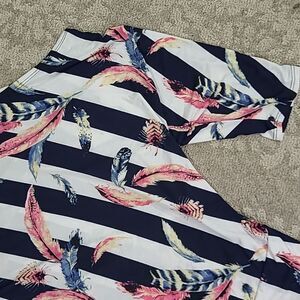 Super cute a symmetrical tunic with cute feather pattern. Ribbed hemline and cap sleeves. 95% polyester NWOT