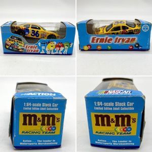 This Action Racing 1999 NASCAR die cast 1:64 scale replica of Ernie Irvan’s M&M #36 car. This is one of a limited production of 3,000. The hood also opens! Complete with original box and plastic insert! Please notice that a corner of the box was torn and taped, and another has a slight tear. Car itself is in new, never used condition.